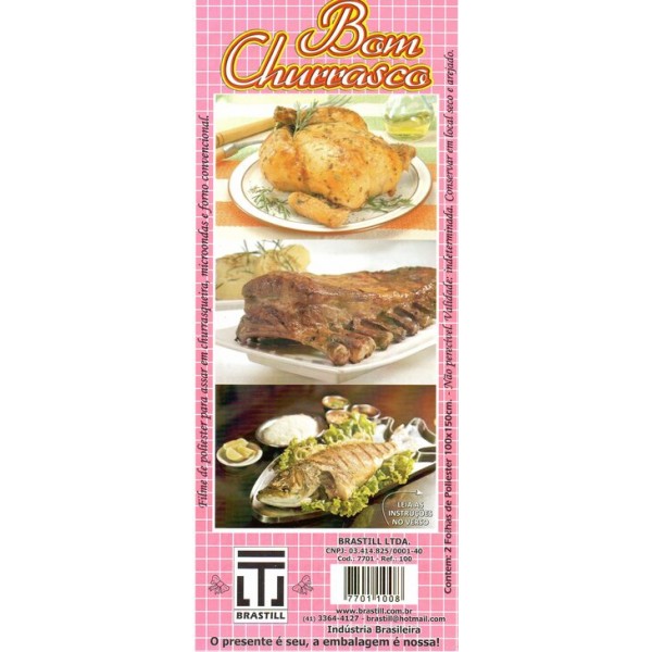 Filme de poliester para assar em churrasqueira, microondas e forno convencional.